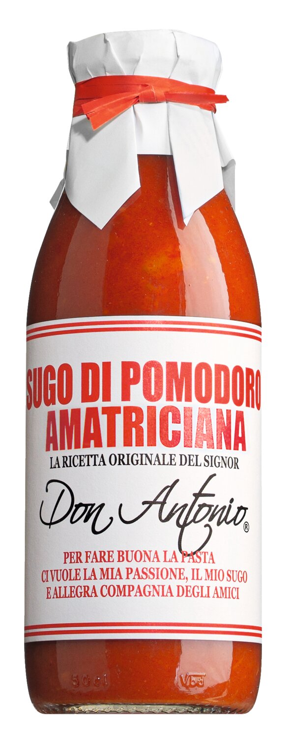 Tomaten (Ciliegino), Guanciale (luftgetrocknete Schweinebacke), Zwiebel, Olivenöl, Weißwein, Oregano, Meersalz